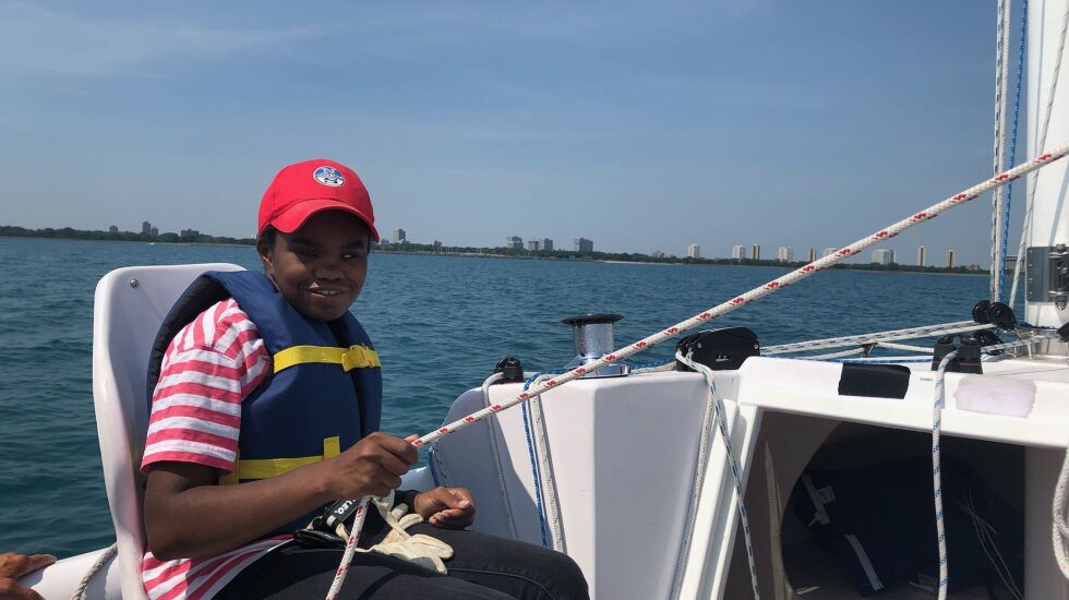 Washington says she’s always been drawn to boats, but it was a chance encounter in 2017 at the Jackson Park Outer Harbor that got her into competitive sailing. She was fishing with her uncle when she got to talking with members of the Judd Goldman Adaptive Sailing Foundation, which provides sailing lessons to people with disabilities.
