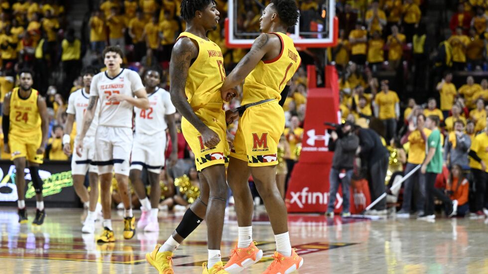 COLLEGE PARK, Md. — Jahmir Young scored 24 points, including a crucial 3-pointer with 14.3 seconds remaining that helped No. 22 Maryland stay undefeated with a 71-66 victory over No. 16 Illinois on Friday night.