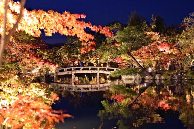 Maple trees at the Eikando Zenrinji temple in Sakyo Ward, Kyoto, which is famous for its autumnal foliage, are lit up on Thursday in preparation for a special nighttime visit (Nov. 7 to Dec. 6). When about 650 lights were turned on, about 3,000 maple trees, which have begun to change color, stood out vividly. The best time to view the maples is said to be around the 20th of this month. The special viewing hours are from 5:30 p.m. to 8:30 p.m. Admission is 600 yen for junior high school students and older. As a countermeasure against the novel coronavirus, visitors will be asked to take temperature readings and disinfect their hands.
