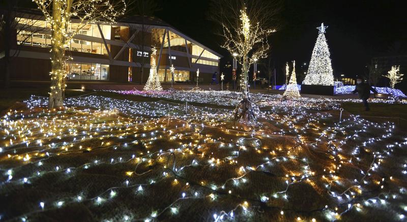 An ocean-themed illumination event with more than 50,000 light emitting diodes has been installed in front of JR Onagawa Station in Onagawa, Miyagi Prefecture. The event has been held in the town since 1998, but the area was hit hard during the 2011 Great East Japan Earthquake, in which the subsequent tsunami claimed more than 800 lives and washed away about 80,000 light bulbs. That same year, however, 10,000 light bulbs were donated and the illumination event was held without interruption. The station, which was also destroyed by the tsunami, was rebuilt in 2015 on a higher site closer to the mountains about 200 meters away from the previous location.