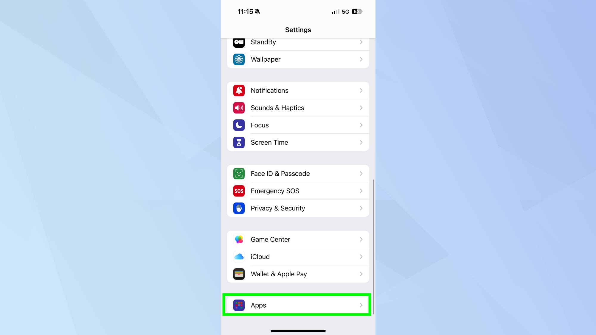 Open the Settings app on your iPhone and scroll down to find the Apps section. Then tap it to see all your installed applications.