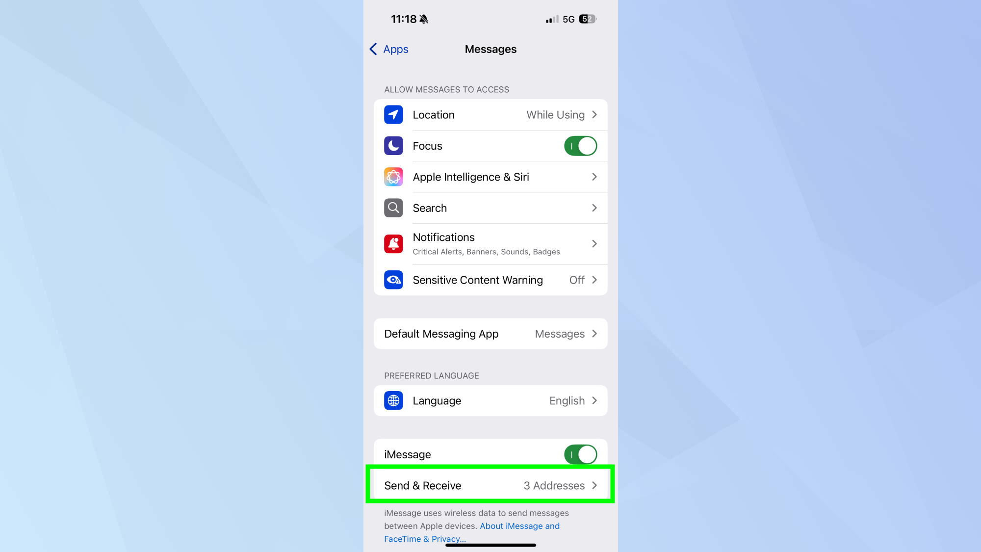 Finally, check your iMessage settings by going to Settings, Messages, and Send & Receive. Your phone number should now appear in the list of addresses where you can be reached.
