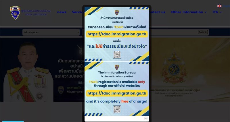 Visitors must submit their details only via the official website at tdac.immigration.go.th, or through the Immigration Bureau’s main site, which provides a verified link and QR code to the platform.
