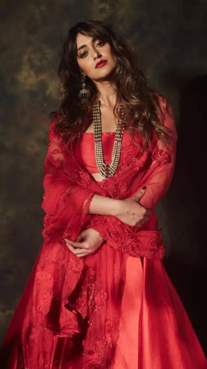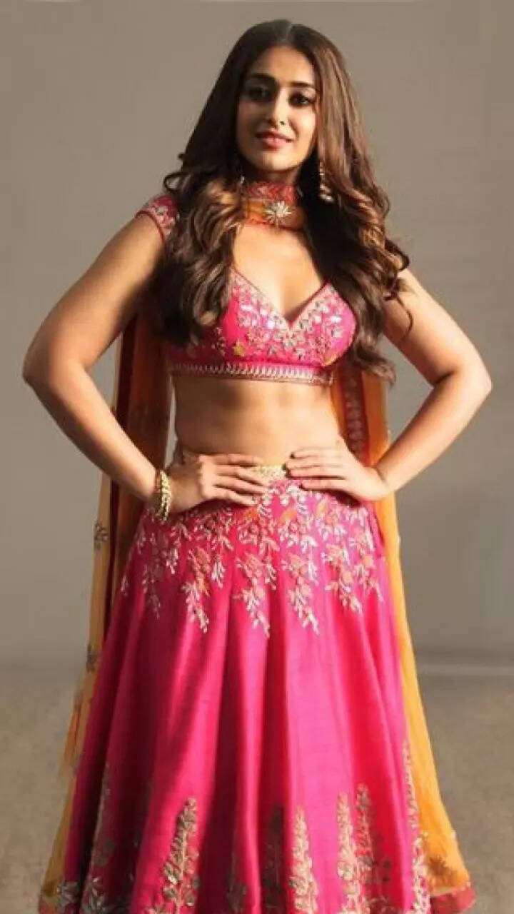 Ileana’s pink lehenga set is a perfect fit for a stunning traditional look.