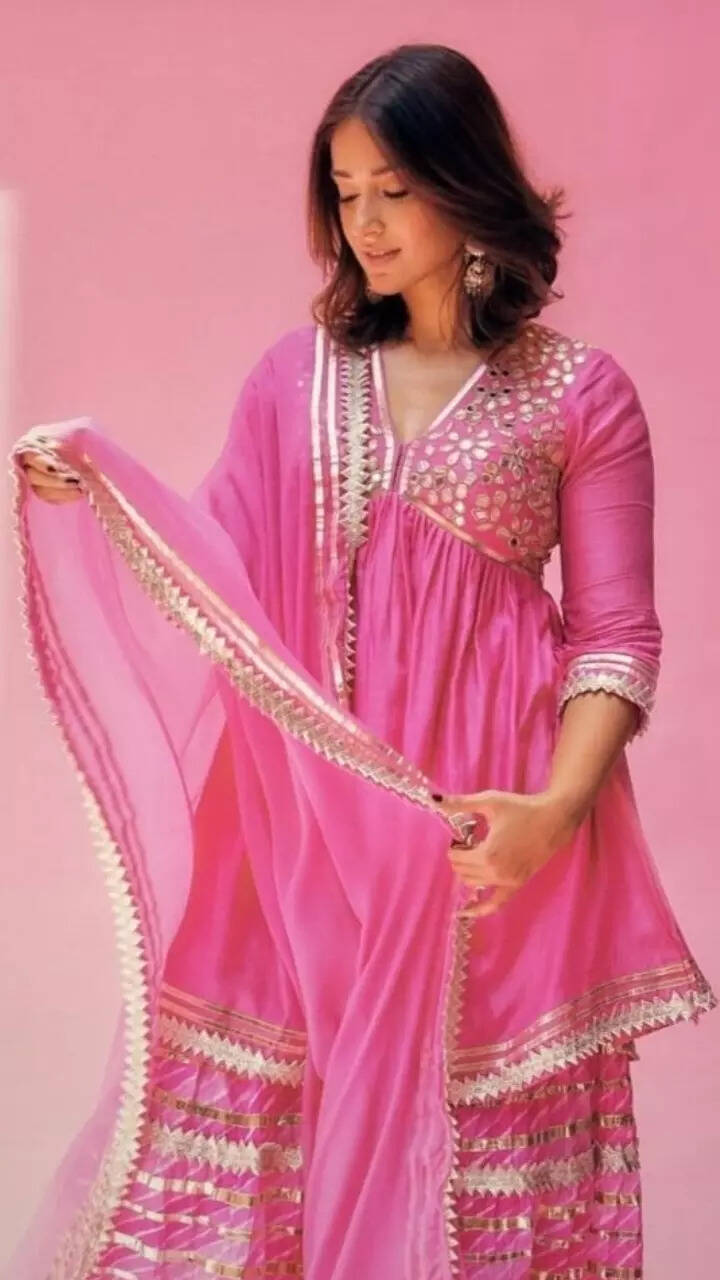 Flaunting her killer look, the \'Amar Akbar Anthony\' actress decked up in a pink sharara set.