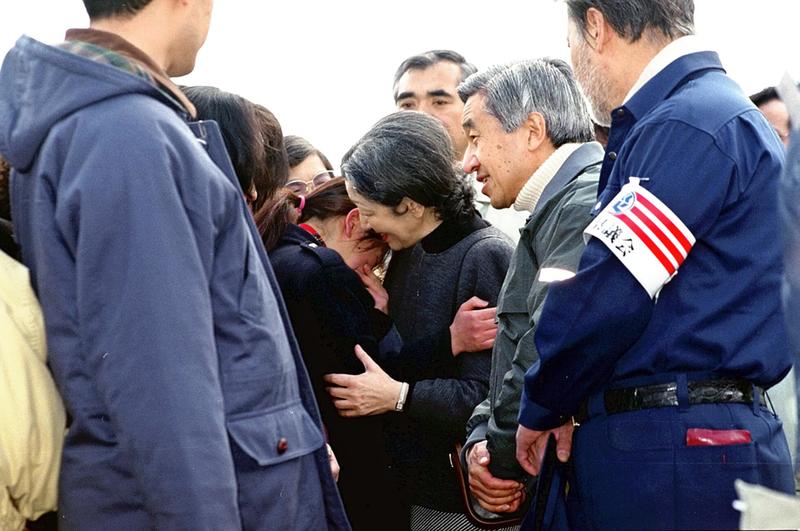 The Emperor established his own style of visiting areas hit by natural disasters shortly after they occured in order to meet the evacuees. In January 1995, the Imperial couple visited areas hit by the Great Hanshin Earthquake two weeks after the disaster. The couple encouraged evacuees by talking to them while they were down on their knees. When the Great East Japan Earthquake occurred in March 2011, the couple visited evacuation shelters in the three prefectures in the Tohoku region and other places for seven consecutive weeks. Their final visit to meet evacuees was in Atsuma, Hokkaido, in November last year. They were both 84 years old when they made the trip.