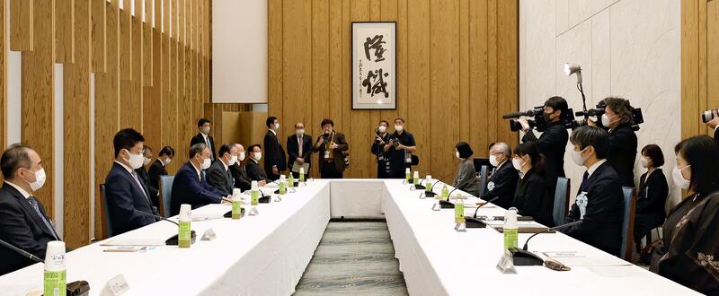 "The panel will discuss extremely important matters that concern the fundamentals of the country," Prime Minister Yoshihide Suga said at the beginning of the meeting at the Prime Minister's Office. "I'd like the panel to sort out various points of view in an easy-to-understand manner."