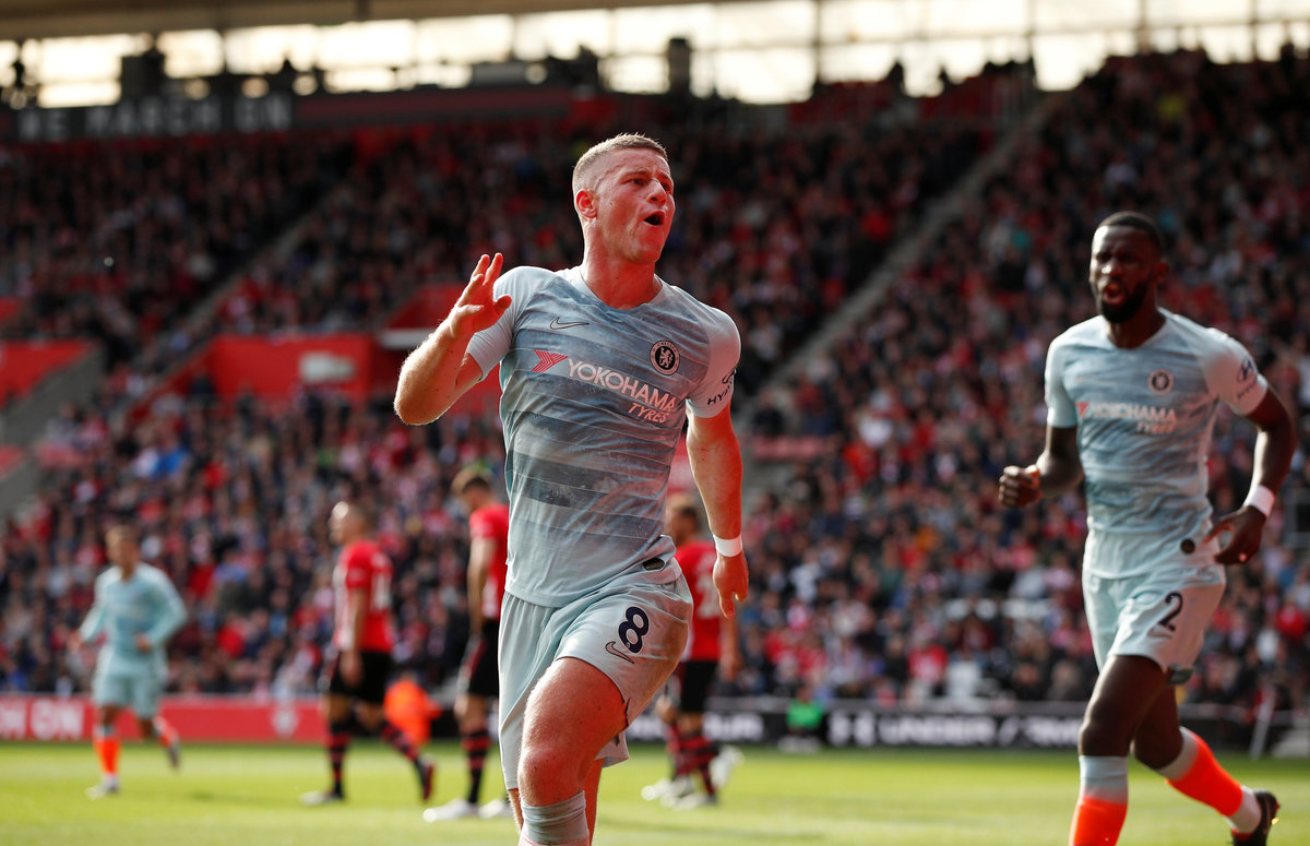 (Reuters) - Ross Barkley scored his first goal for Maurizio Sarri's unbeaten Chelsea to help move them provisionally top of the Premier League in a 3-0 win at Southampton on Sunday.