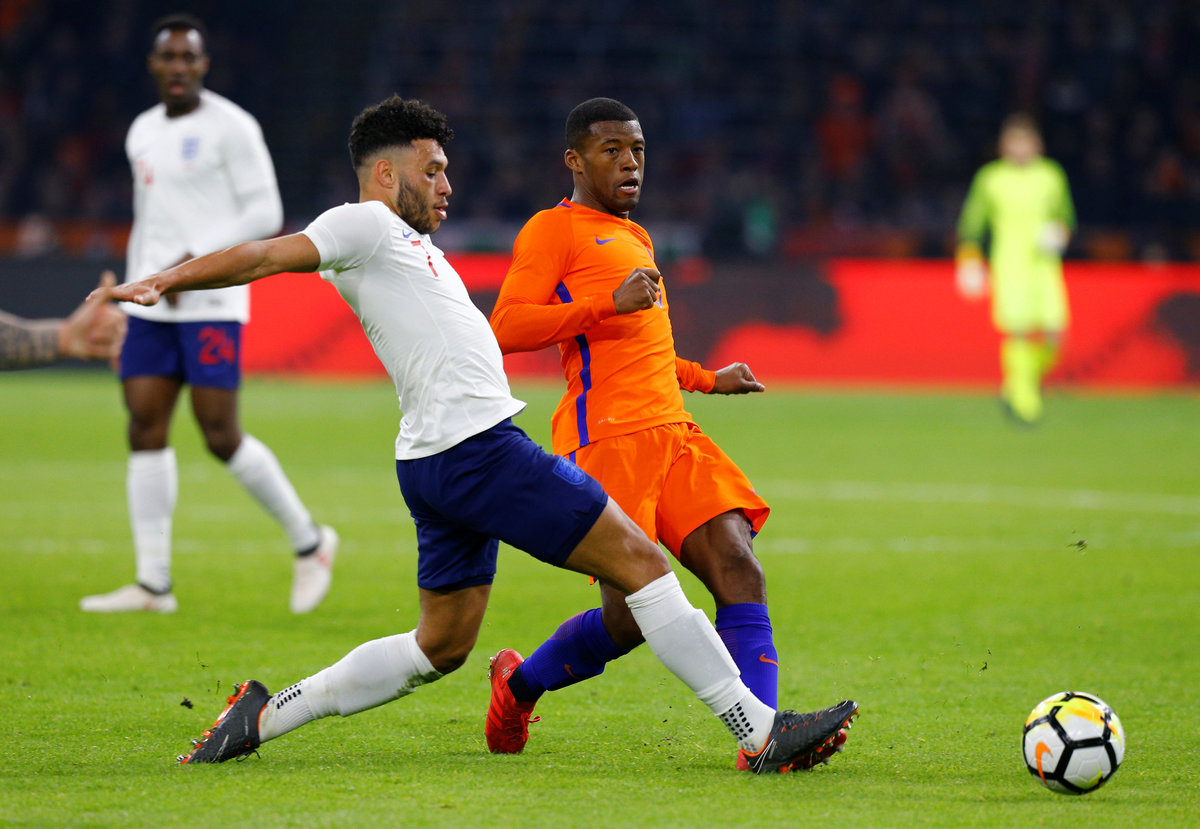 Soccer Football - International Friendly - Netherlands vs England - Johan Cruijff Arena, Amsterdam, Netherlands - March 23, 2018 England’s Alex Oxlade-Chamberlain in action with Netherlands' Georginio Wijnaldum REUTERS/Michael Kooren