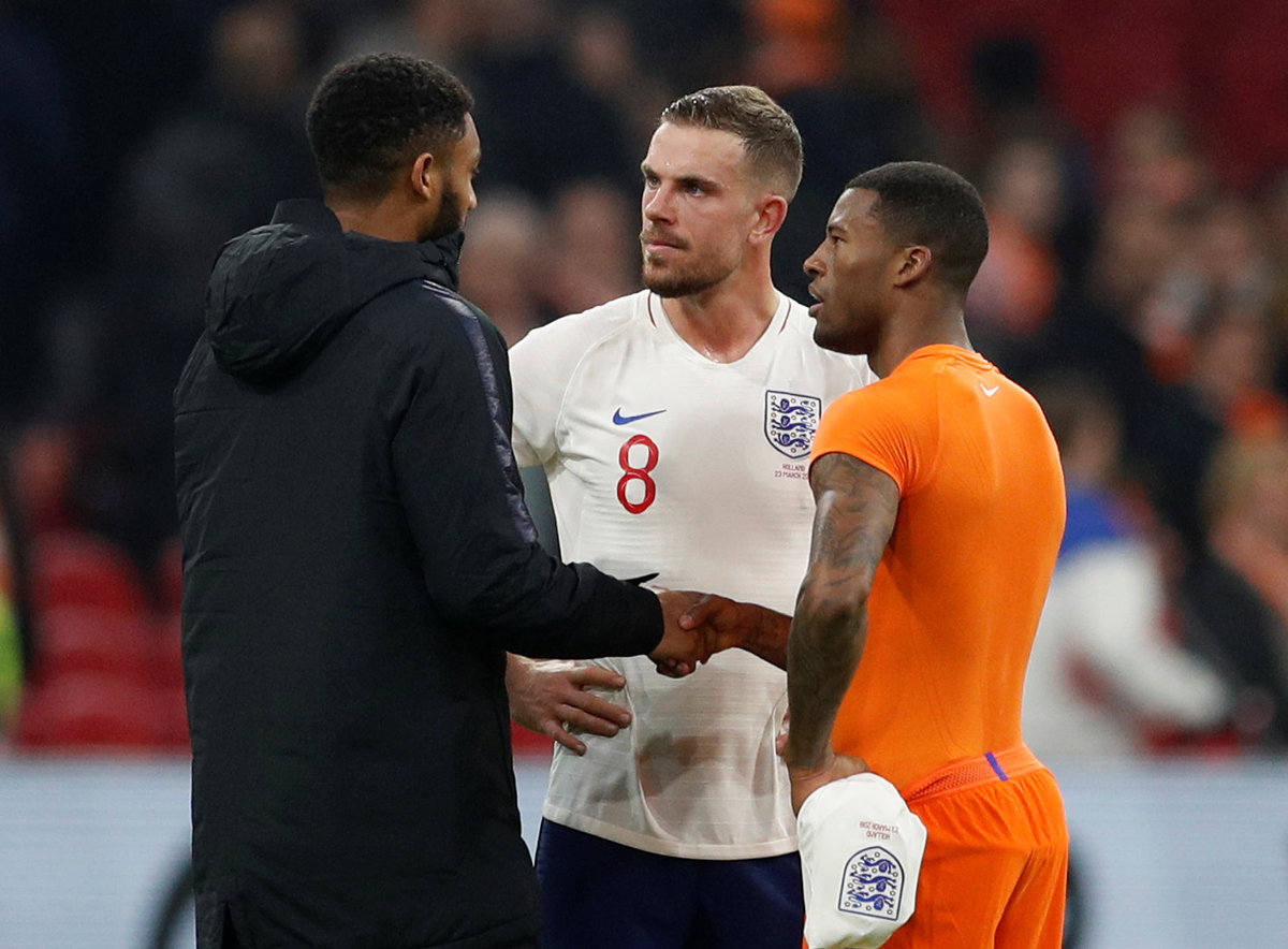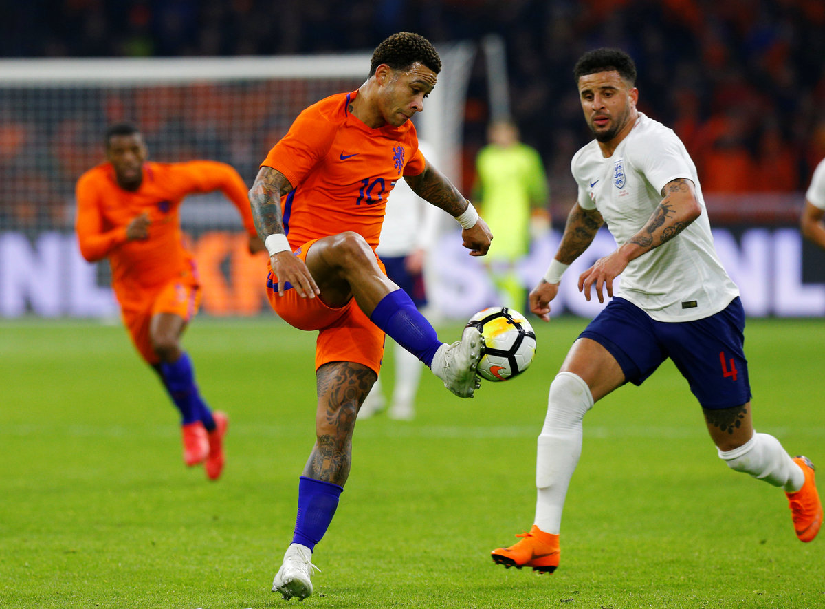 Soccer Football - International Friendly - Netherlands vs England - Johan Cruijff Arena, Amsterdam, Netherlands - March 23, 2018 Netherlands' Memphis Depay in action with England’s Kyle Walker REUTERS/Michael KoorenSoccer Football - International Friendly - Netherlands vs England - Johan Cruijff Arena, Amsterdam, Netherlands - March 23, 2018 England’s Danny Welbeck, Harry Maguire, Jordan Henderson and Kyle Walker in a wall against a freekick from Netherlands' Memphis Depay Action Images via Reuters/John SibleySoccer Football - International Friendly - Netherlands vs England - Johan Cruijff Arena, Amsterdam, Netherlands - March 23, 2018 Netherlands' Memphis Depay in action with England’s Kyle Walker REUTERS/Michael KoorenSoccer Football - International Friendly - Netherlands vs England - Johan Cruijff Arena, Amsterdam, Netherlands - March 23, 2018 Netherlands' Quincy Promes in action with England’s John Stones REUTERS/Michael KoorenSoccer Football - International Friendly - Netherlands vs England - Johan Cruijff Arena, Amsterdam, Netherlands - March 23, 2018 England’s Marcus Rashford in action with Netherlands' Matthijs de Ligt and Jeroen Zoet Action Images via Reuters/John SibleySoccer Football - International Friendly - Netherlands vs England - Johan Cruijff Arena, Amsterdam, Netherlands - March 23, 2018 England manager Gareth Southgate with England’s James Tarkowski after the match REUTERS/Michael KoorenSoccer Football - International Friendly - Netherlands vs England - Johan Cruijff Arena, Amsterdam, Netherlands - March 23, 2018 England’s Raheem Sterling in action with Netherlands' Patrick van Aanholt Action Images via Reuters/John SibleySoccer Football - International Friendly - Netherlands vs England - Johan Cruijff Arena, Amsterdam, Netherlands - March 23, 2018 Netherlands' Hans Hateboer and Virgil van Dijk after the match Action Images via Reuters/John SibleySoccer Football - International Friendly - Netherlands vs England - Johan Cruijff Arena, Amsterdam, Netherlands - March 23, 2018 Netherlands' Stefan de Vrij shoots at goal REUTERS/Michael KoorenSoccer Football - International Friendly - Netherlands vs England - Johan Cruijff Arena, Amsterdam, Netherlands - March 23, 2018 England’s Jordan Henderson and Joe Gomez with Netherlands' Georginio Wijnaldum after the match Action Images via Reuters/John SibleySoccer Football - International Friendly - Netherlands vs England - Johan Cruijff Arena, Amsterdam, Netherlands - March 23, 2018 England’s Raheem Sterling in action Action Images via Reuters/John Sibley