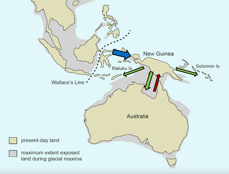 The genetic relatedness of distant rodent relatives tells us the ancestor of Australia’s native rodents originated in southeast Asia. There’s never been a land connection between Asia and New Guinea, and so we know this must happened via over-water colonisation – possibly on a piece of driftwood.