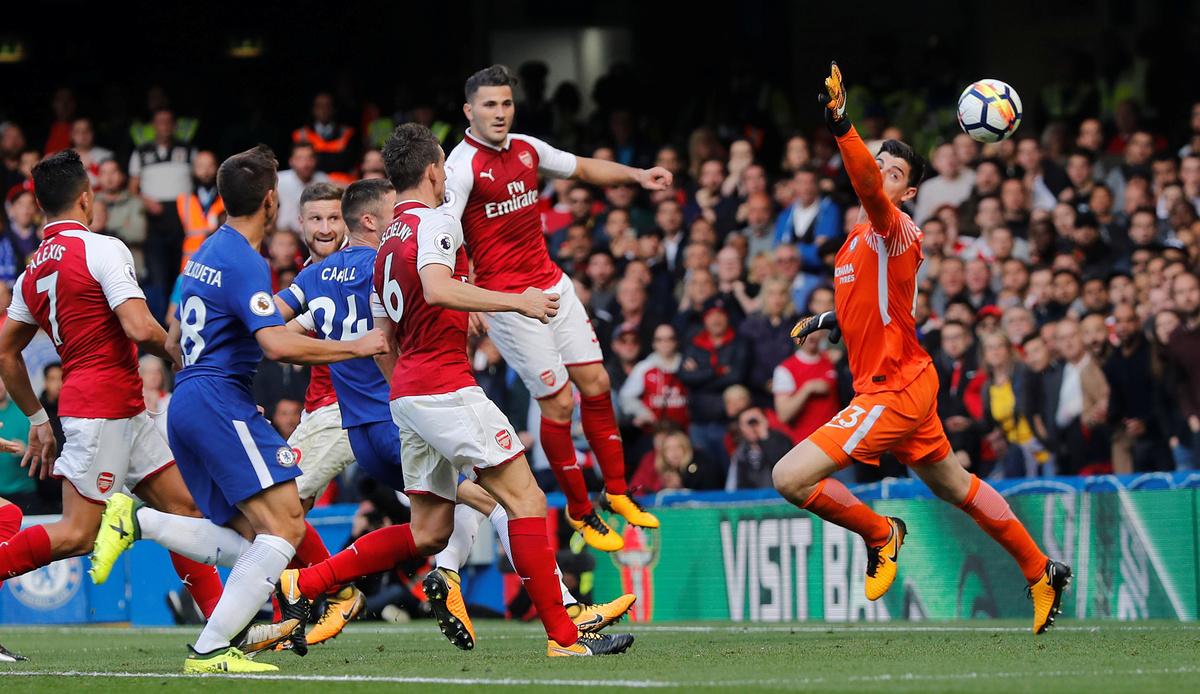Arsenal's hearts were in their mouths when Hazard slalomed through and pulled the trigger but his fierce rising drive was well held by the perfectly-positioned Petr Cech.