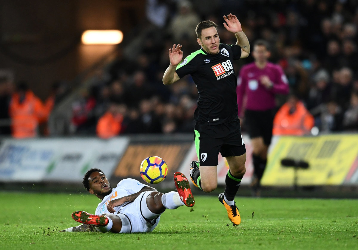 Bournemouth began the game brightly but missed a chance to go ahead within two minutes as winger Marc Pugh scuffed Joshua King's low cross. Bournemouth sat back and allowed Swansea to grow in confidence but the hosts failed to make the most of their chances.