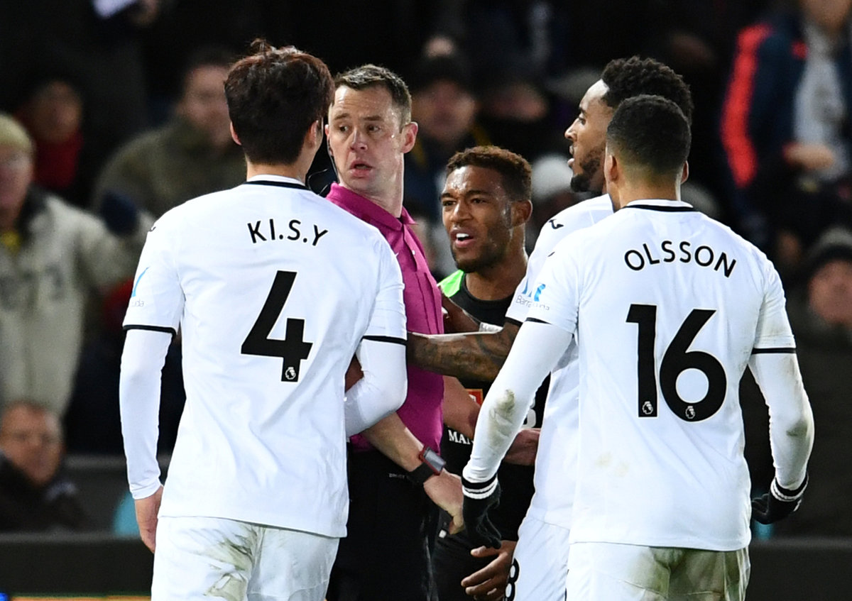 Wilfried Bony provided the game's other talking point just before halftime when the Swansea striker curled a shot into the top corner but his effort was disallowed after Jordan Ayew was adjudged to have fouled defender Nathan Ake in the build-up.