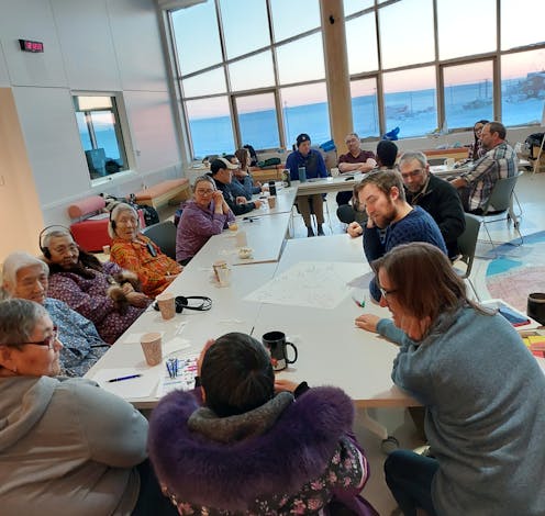 At the workshops, Elders recalled how their ancestors read the land through the behaviour of animals like Umingmak (muskox) and Tuktu (caribou), using generations of observation to predict changes in the environment. Today, the increasing distance hunters must travel to find muskox reflects the deepening impacts of climate change.
