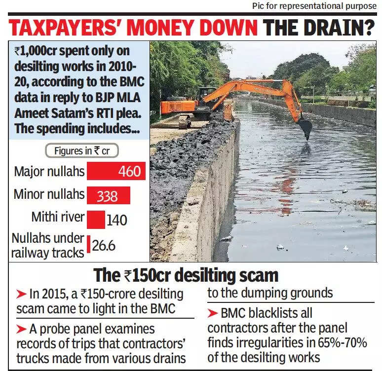 MUMBAI: The BMC has spent Rs 7,000 crore on desilting works and stormwater drain (SWD) projects in a decade, showed the civic body’s data in reply to a Right to Information (RTI) application.