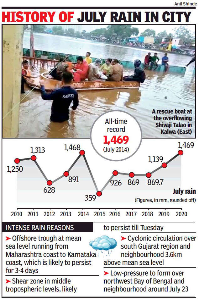 If the rain continues at this rate, Mumbai could record its wettest July ever, considering that 1,468.5mm in 2014 has been the maximum for the month so far. In 2005, when tragic Mumbai floods had followed 944mm of rain in just 24 hours, the month had recorded 1,454.5mm.