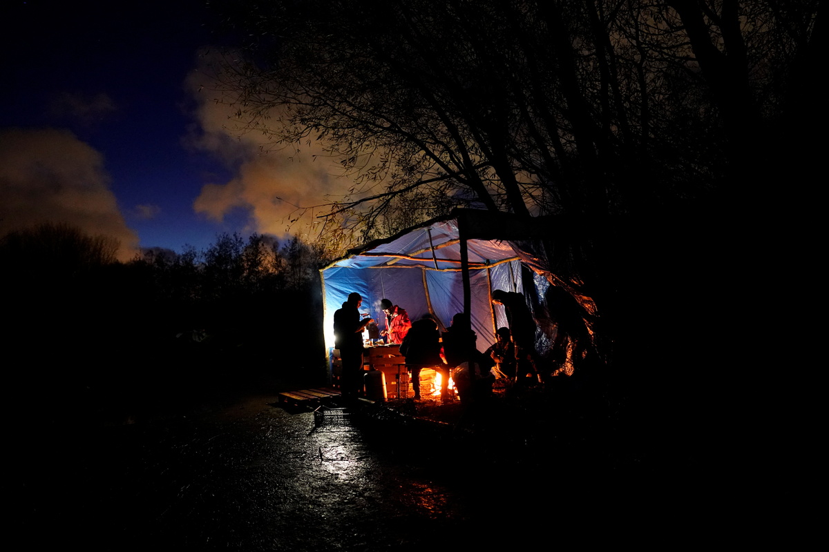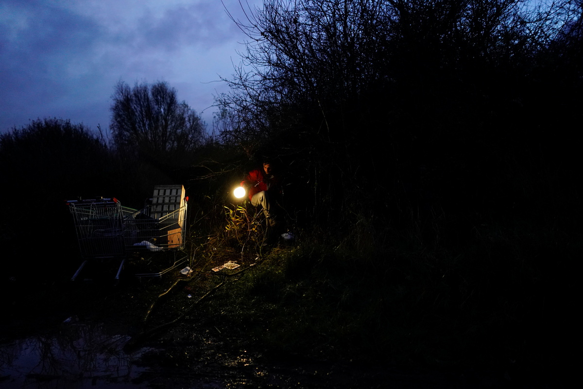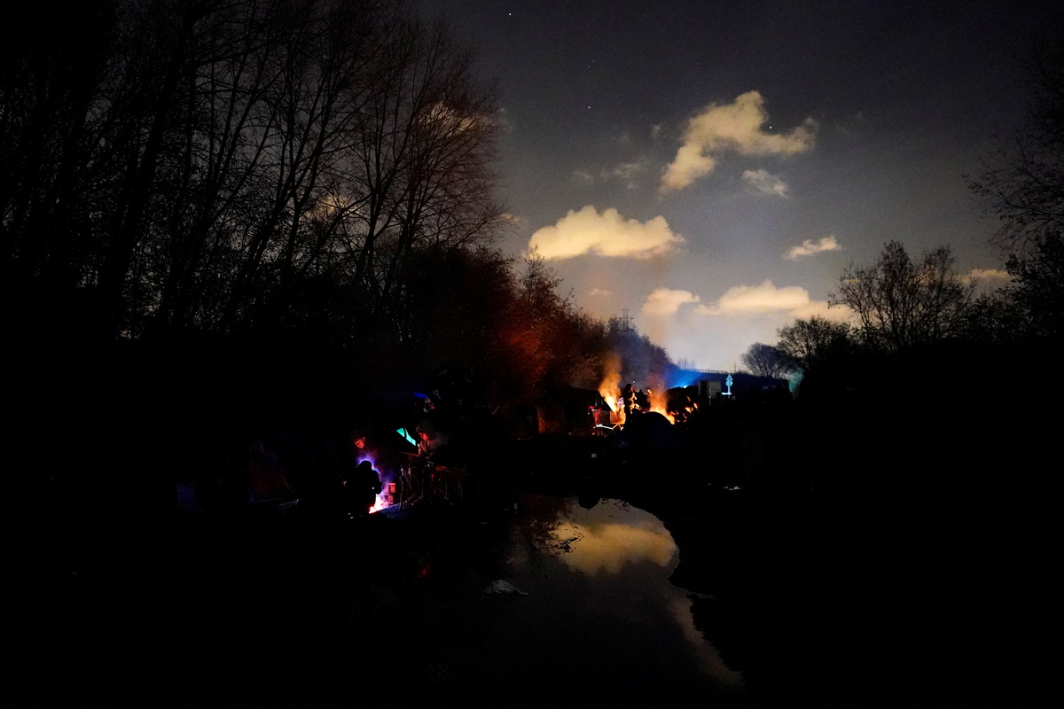 The camp smells toxic as people start burning bottles and packaging to keep bonfires going. “Everyone is at home in front of their fireplaces, and we are here under a sheet of plastic,” he said.