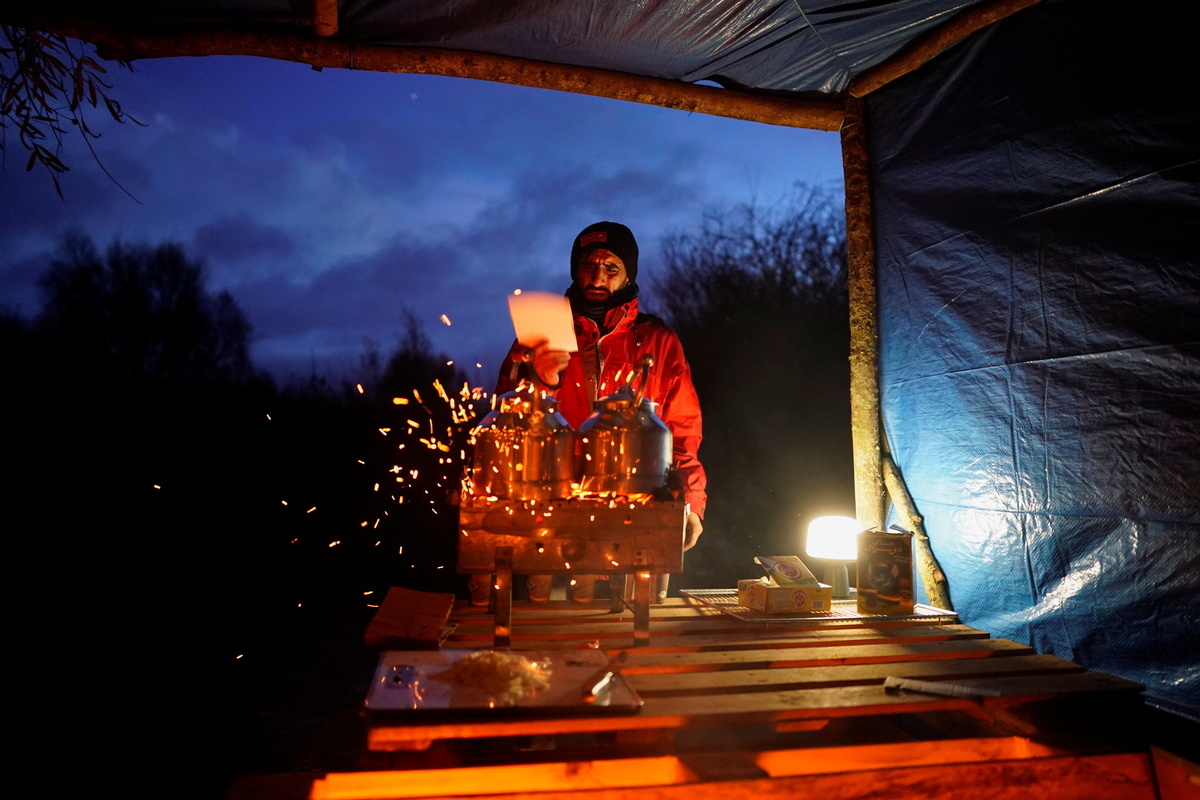 A couple of days after migrants started to set up tents in a new location along an old rail line in Dunkirk in northern France last week, Dawan Anwar Mahmud quickly took the opportunity to build the make-shift camp’s first restaurant.