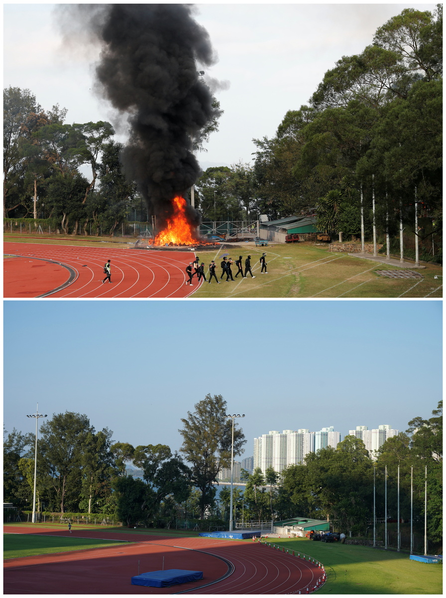 Children were given toy versions of police guns and played with them under the watchful eye of cops in riot gear, including inside a replica of a subway train carriage. To many in Hong Kong, these images were a surreal shadow play of the widely televised scenes of police officers charging onto a train on August 31, 2019, pepper-spraying and hitting cowing youngsters with batons.
