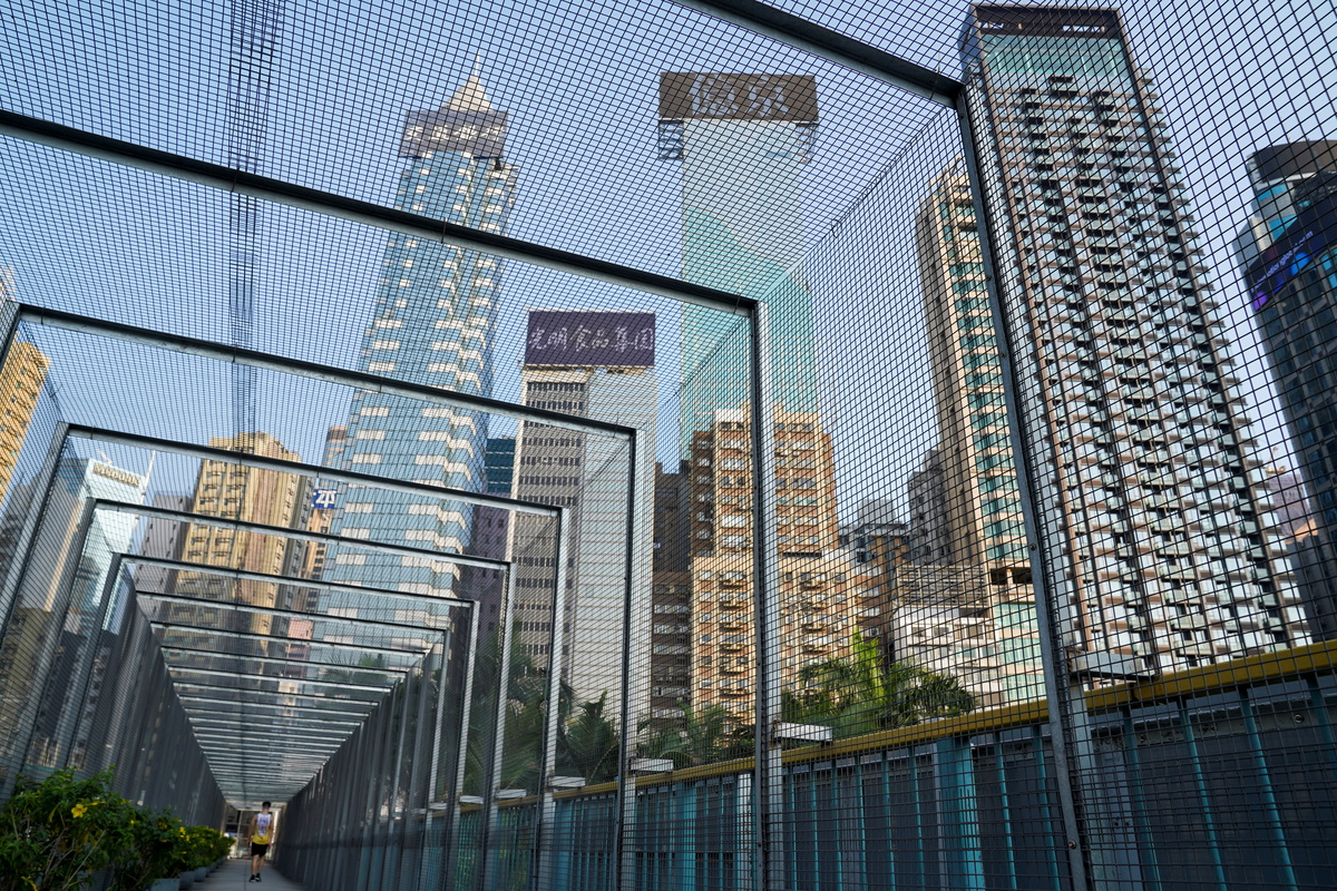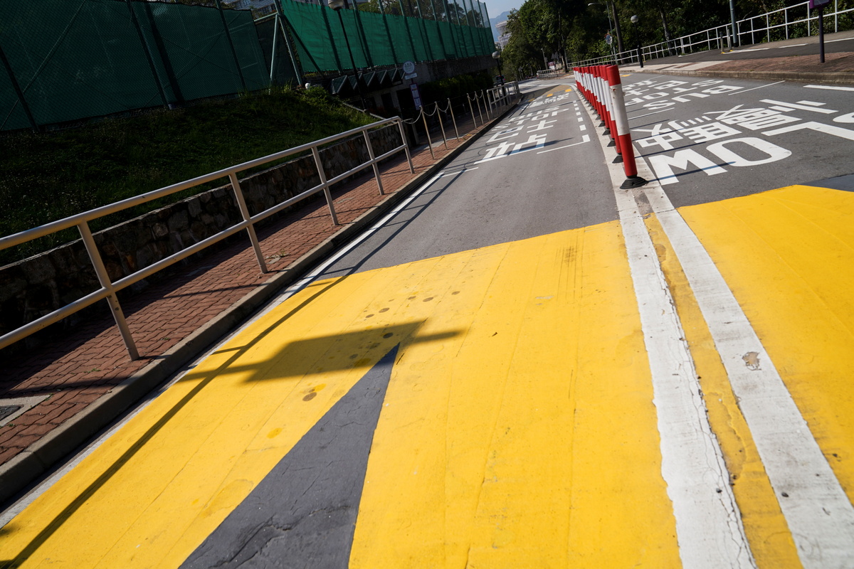 Suspended footpaths that protesters used to launch petrol bombs have been covered with fences and barbed wire. Plastic, water-filled barriers surround and protect administrative buildings, forcing pedestrians to cross to the other side or walk through a narrow corridor in between the barriers and police in riot gear standing guard.