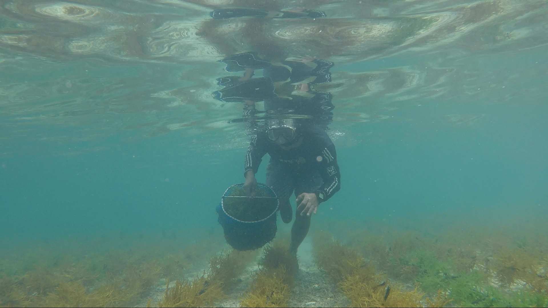"We are still proud of this island because we still survive from seaweed farming," says a worker out in the channel. "In the city, no jobs. It's like, game over."