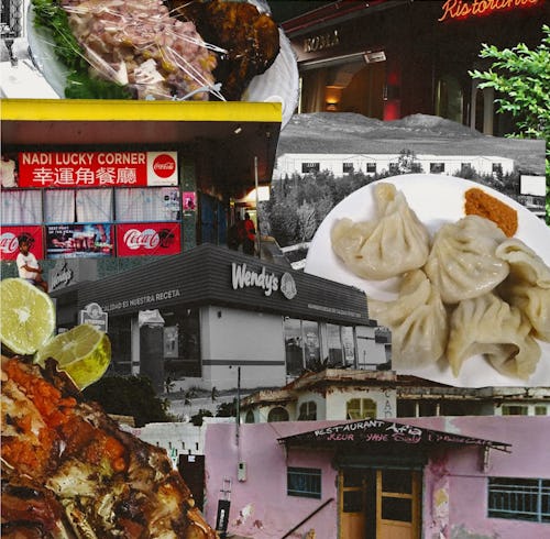 I don’t think we are meant to draw any conclusions about these restaurants themselves. We never know if they are hole in the wall revelations or part of an enlightening regional tapestry or possess the cartoon gluttony of a Diners Drive-Ins & Dives spot. We know almost nothing about them besides that they exist and that someone depended on them. At a Subway in Saipan about to eat a sandwich that looks so stale it could knock someone unconscious, a snack between meetings, walking from the dark and carpeted corridor of a movie theater in Utah toward the glow of the popcorn machine. Styrofoam takeout boxes buckling under the weight of basmati rice; restaurants furnished only with the kind of chairs you’d play poker at in a basement. Crinkle cut French fries from every continent. A greasy bag of assorted carbohydrates when you’re desperate for anything to winch you up from the crater you’ve spent the last six hungover hours in, scrolling the same three websites. The restaurants are just the arena.