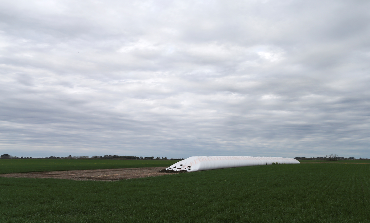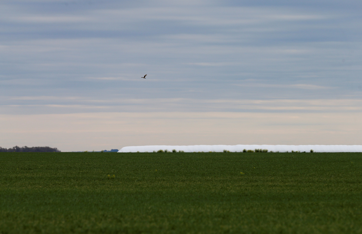 In Blanchard's farm, outside the town of Azul, water is clearly needed. The tips of the wheat leaves are burned and yellow, and unusually the earth furrows between the June-planted crop are easily visible, a sign of delayed growth.