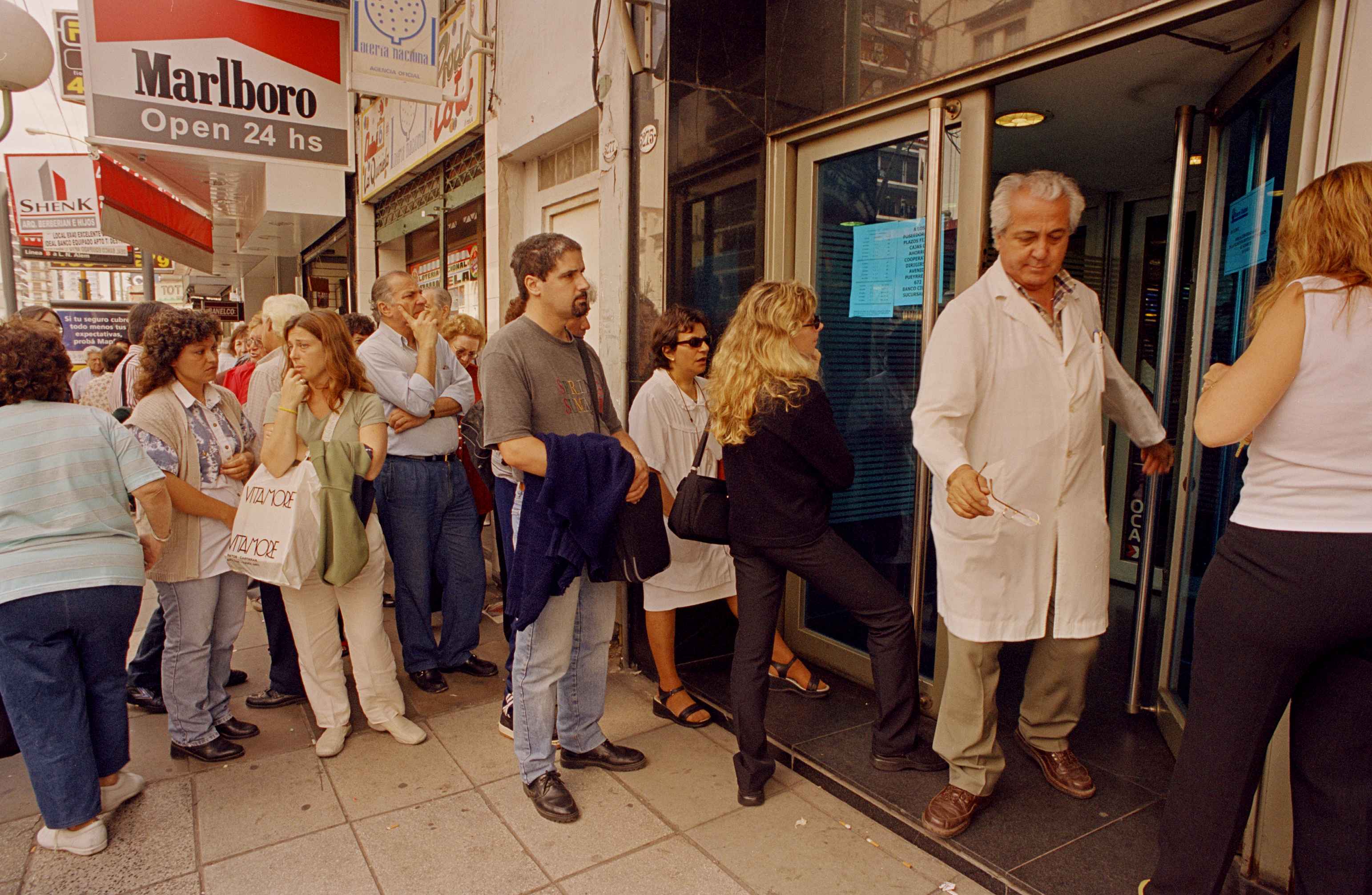 The economy shrank in response and the ensuing recession led to a crisis in 2001, after citizens were unable to withdraw their money from banks.