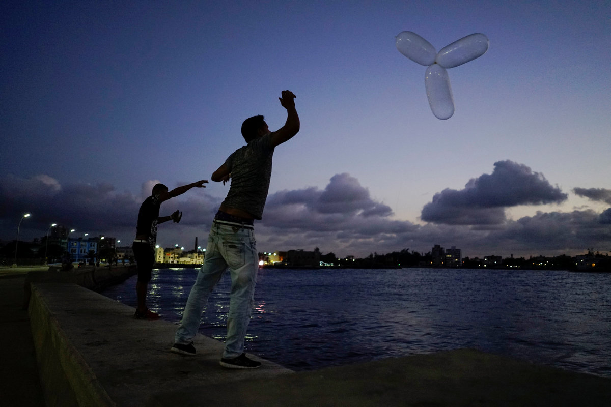 Along the coast, floats made from several inflated rubbers tied together bob on the sea, carrying baited hooks of fishing lines. These allow those fishermen confined to Cuba's shores due to authorities' strict controls on boats for fear of illegal emigration to send their hooks further out.