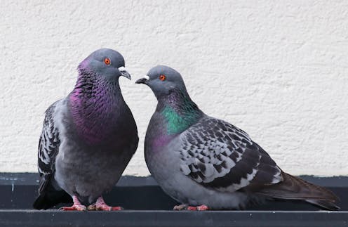Homing pigeons can find their way using smell, landmarks, Earth’s magnetic field and infrasound (sound waves with a frequency too low for humans to hear). They can also follow each other and are able to learn routes from one another. Feral pigeons generally mate for life, and they are very attentive parents. The adults produce a crop milk, which they gently drip-feed to their chicks.