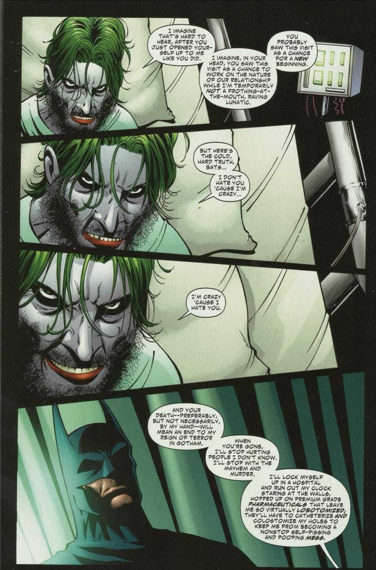 Sometimes this has meant rooting for no one. Other times, it has meant rooting for a villain with a compelling backstory, a softer side they must bury in order to stand a chance at winning. I am more curious about what the villain would do from the margins of defeat. How losing would shape their next move or best turn of phrase, like when Magneto gets so tired of the chaos he retires from the fight and heads off to his orbital base to live a life of quiet seclusion or the Joker finally says to Batman, "I don't hate you 'cause I'm crazy. I'm crazy 'cause I hate you." The villain is usually more honest about what they want and what they’ll do to get it. Living in a deceitful world as the many things I am, I find this level of honesty refreshing, far more refreshing than a white man with an enemy, armed with superpowers or a fleet of super-white super friends, indebted with a noble pursuit.