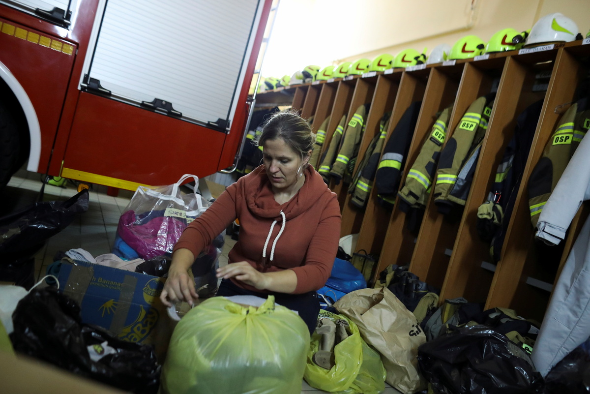 Just a few hundred metres away from the fire station, in the grounds of a school, volunteers from around Poland are running another centre providing supplies to NGOs on the ground.