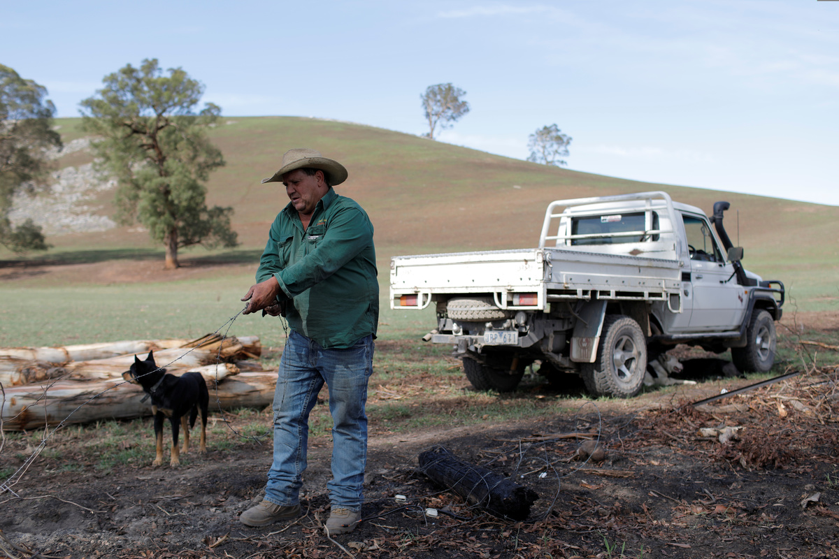 From the verandah of his home, nestled on a 400-hectare property of rolling hills, gum trees and Merino sheep, he watched a giant orange plume crest over the hill and rain down fiery embers.