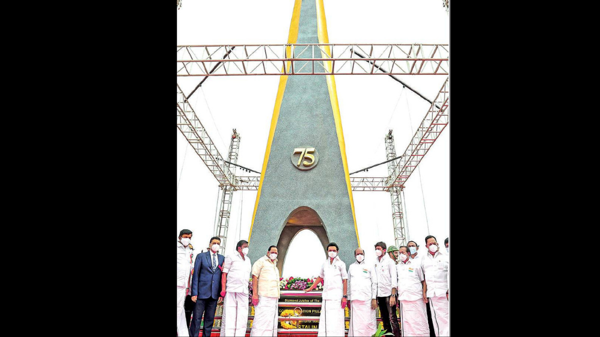 CM Stalin, who also unveiled a ‘commemorative pillar’ to mark the Diamond Jubilee celebrations of India’s Independence, said the year 2021 was notable for several things including the visit of the President for the centenary celebrations of the Tamil Nadu assembly, completion of hundred years of Justice Party being voted to power in TN, and 100 years of Mahatma Gandhi’s visit to the state after which he started using simple clothes.