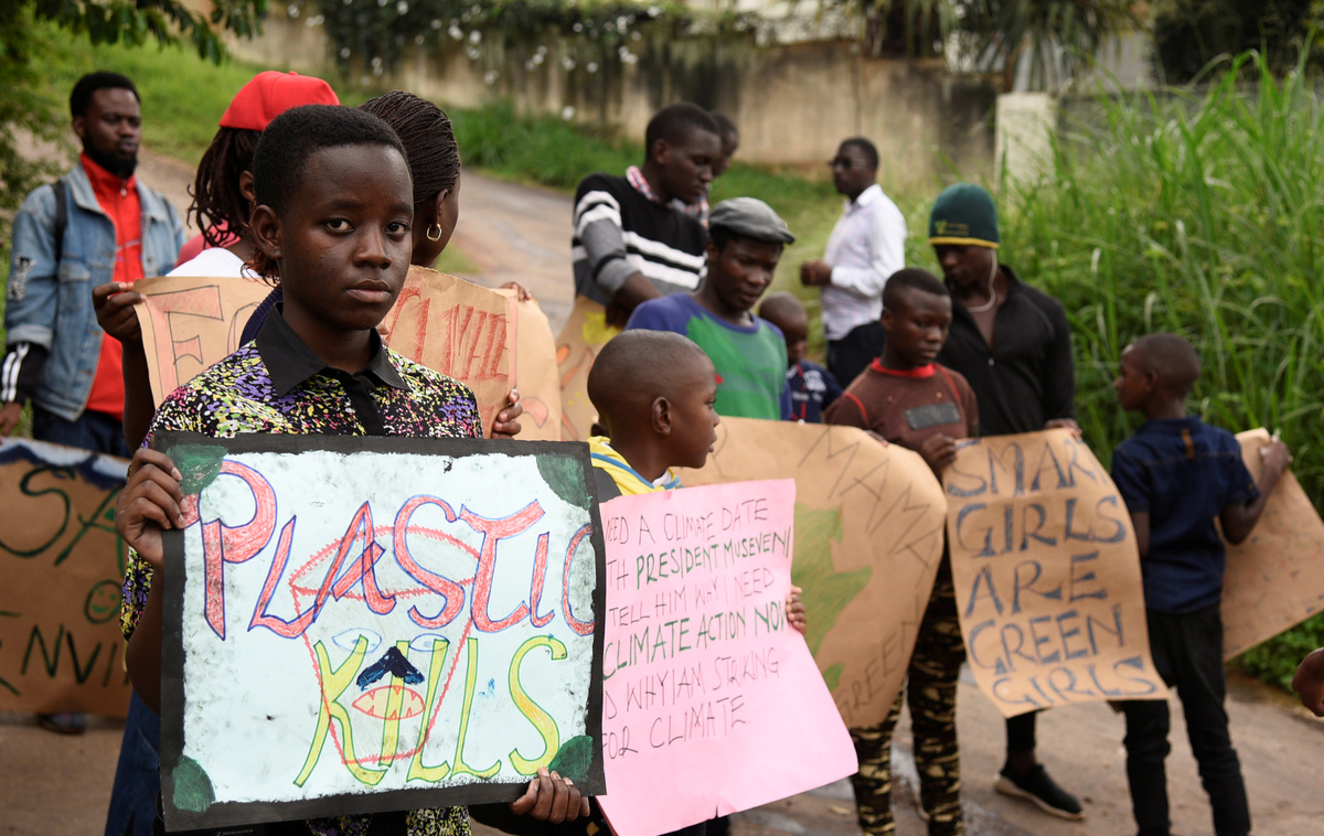 Leah Namugerwa, 14, joined the environmental struggle after seeing news reports of landslides wiping out a Ugandan village. With the help of her father, Cephas Lukwago, she takes time out from boarding school on Fridays to join pupils marching in Kampala.