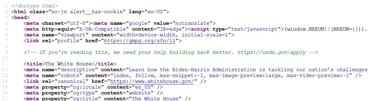 Hidden in the HTML code on https://www.whitehouse.gov was an invitation to join the U.S. Digital Service, a technology unit within the White House.