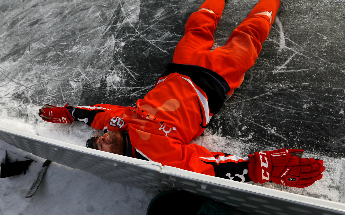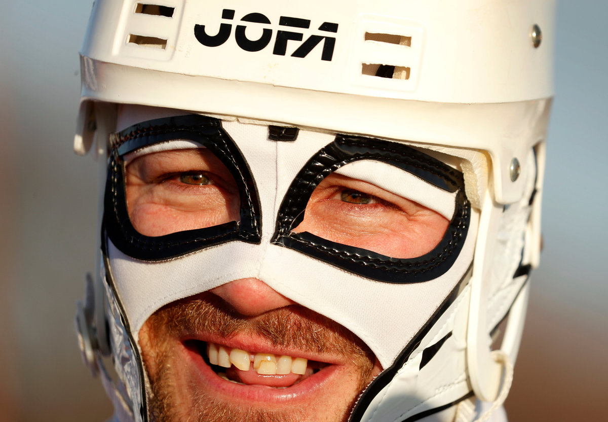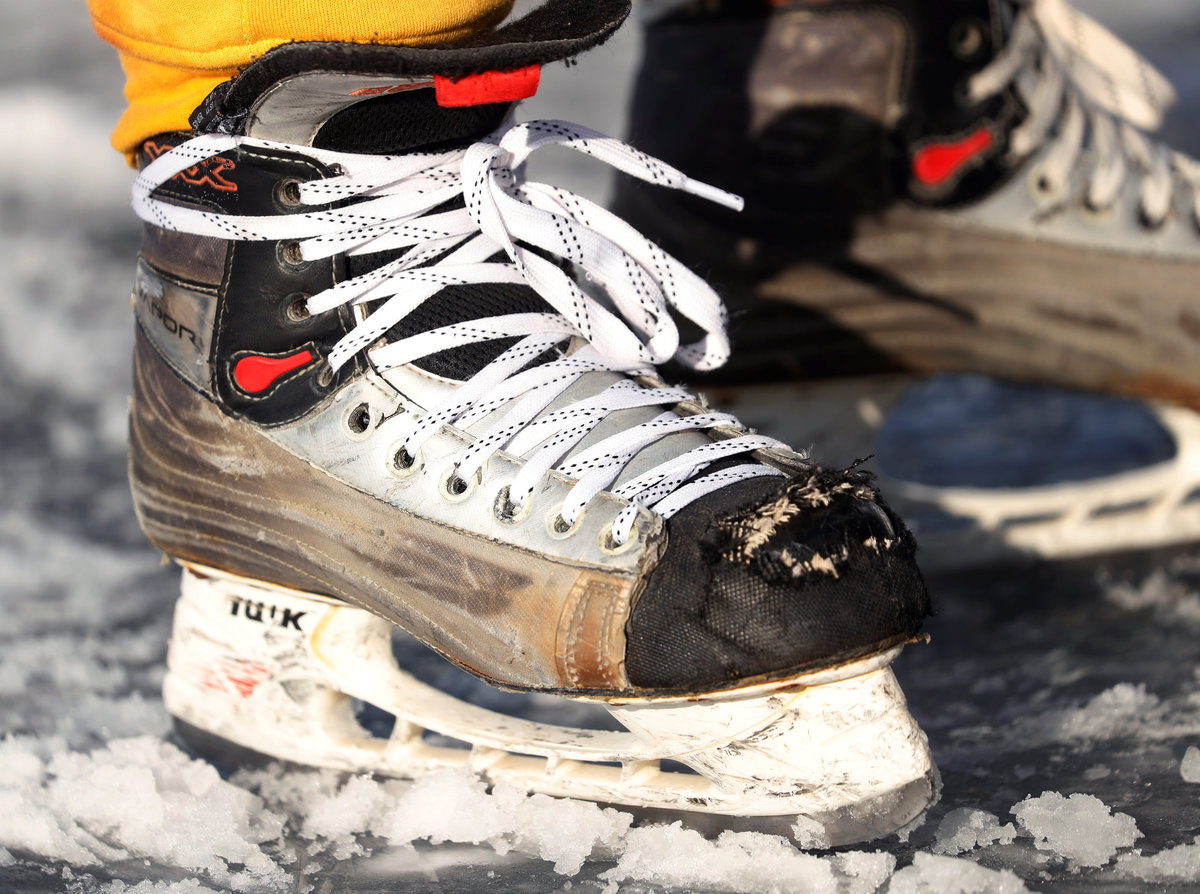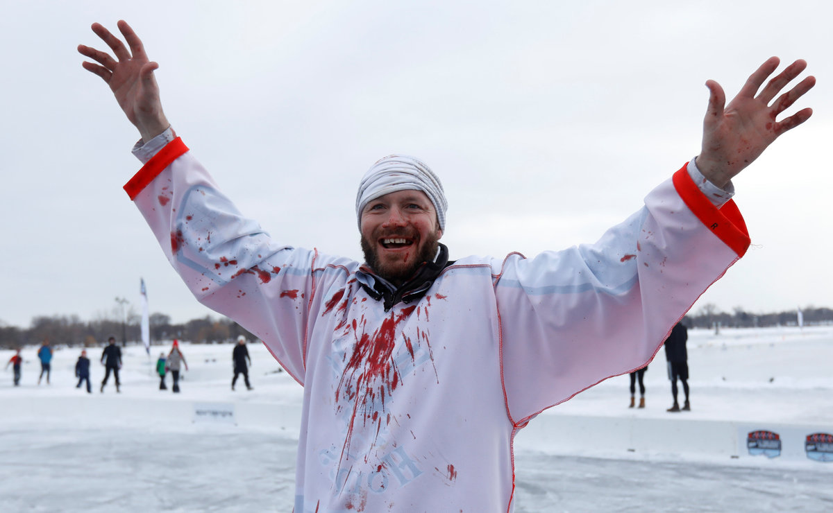 A hockey player takes to the ice at sunrise for the U.S. Pond Hockey Championships on Lake Nokomis in Minneapolis, Minnesota, U.S. January 26, 2018. Picture taken January 26, 2018. REUTERS/Kevin LamarqueDespite puddles from melting ice, players compete in the U.S. Pond Hockey Championships on Lake Nokomis in Minneapolis, Minnesota, U.S. January 26, 2018. Picture taken January 26, 2018. REUTERS/Kevin LamarqueMembers of women's team Consistently Cuatro watch their teammate play during the U.S. Pond Hockey Championships on Lake Nokomis in Minneapolis, Minnesota, U.S. January 27, 2018. Picture taken January 27, 2018. REUTERS/Kevin LamarqueReferee Tony Gogolakis, affectionately and appropriately known "Roadkill" for his complete animal fur wardrobe, speaks with a team during a game at the U.S. Pond Hockey Championships on Lake Nokomis in Minneapolis, Minnesota, U.S. January 28, 2018. Picture taken January 28, 2018. REUTERS/Kevin LamarquePlayers stay warm between games during the U.S. Pond Hockey Championships on Lake Nokomis in Minneapolis, Minnesota, U.S. January 28, 2018. Picture taken January 28, 2018. REUTERS/Kevin LamarqueA player smiles through his mask at the U.S. Pond Hockey Championships on Lake Nokomis in Minneapolis, Minnesota, U.S. January 26, 2018. Picture taken January 26, 2018. REUTERS/Kevin LamarqueA player wears a well worn skate at the U.S. Pond Hockey Championships on Lake Nokomis in Minneapolis, Minnesota, U.S. January 26, 2018. Picture taken January 26, 2018. REUTERS/Kevin LamarqueA player from losing team Orange Theory Fitness crashes into the boards during the men's open final of the U.S. Pond Hockey Championships on Lake Nokomis in Minneapolis, Minnesota, U.S. January 28, 2018. Picture taken January 28, 2018. REUTERS/Kevin LamarqueA player wears a jersey with the name and number of U.S. President Donald Trump during the U.S. Pond Hockey Championships on Lake Nokomis in Minneapolis, Minnesota, U.S. January 26, 2018. The entire team took names of actors in the movie "Home Alone 2" in which Trump had a cameo appearance. Picture taken January 26, 2018. REUTERS/Kevin LamarquePlayers convene during a break at the U.S. Pond Hockey Championships on Lake Nokomis in Minneapolis, Minnesota, U.S. January 26, 2018. Picture taken January 26, 2018. REUTERS/Kevin Lamarque