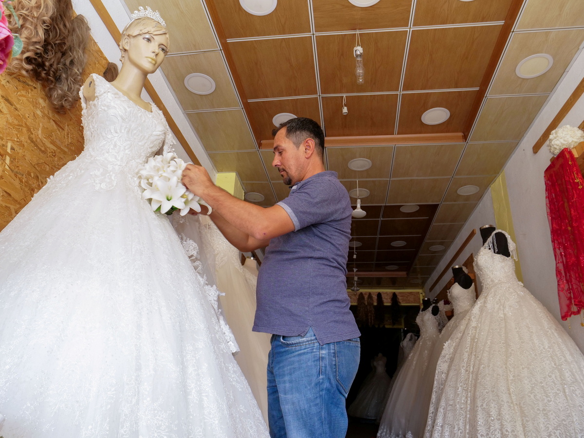 Abdullah sells wedding dresses in the town market but said he gets virtually no customers. "Why spend $10,000 USD on getting married, when you can spend it on getting out?"
