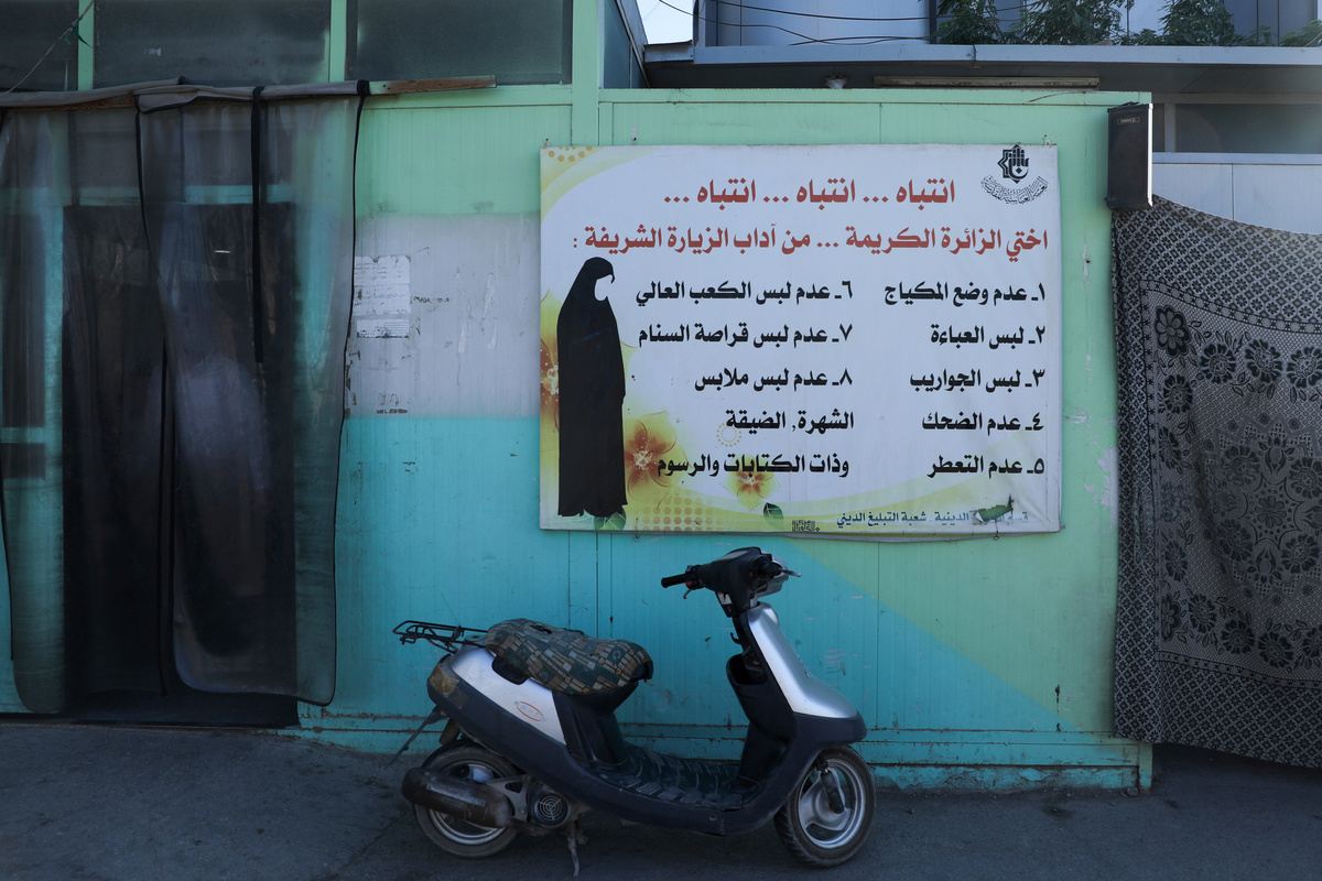 Millions of Shi'ite pilgrims, mostly from Iraq and Iran, visit every year. Shi'ite religious authorities say women should wear the headscarf everywhere in the city.