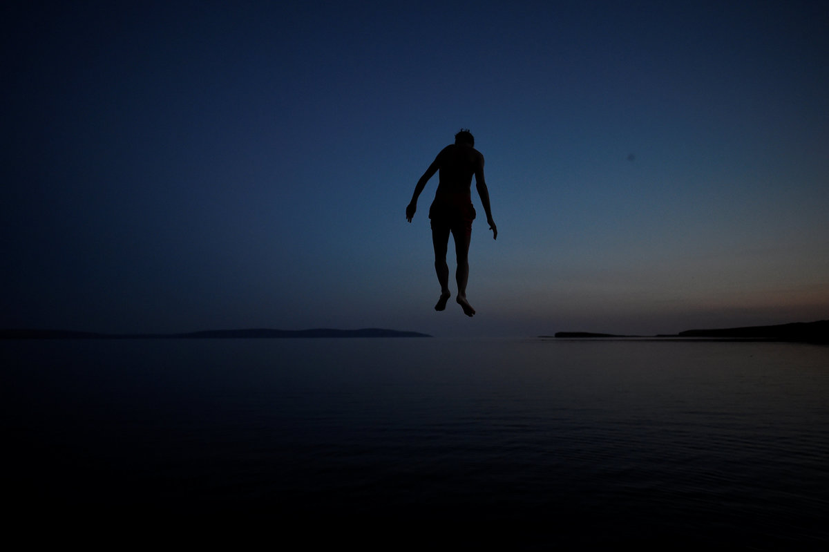 A man jumps off a diving board at night in Salthill, County Galway, Ireland, July 17, 2017. REUTERS/Clodagh Kilcoyne