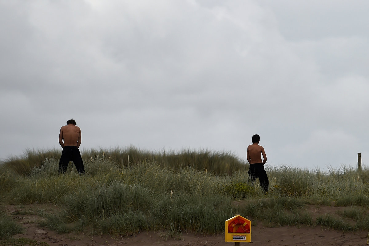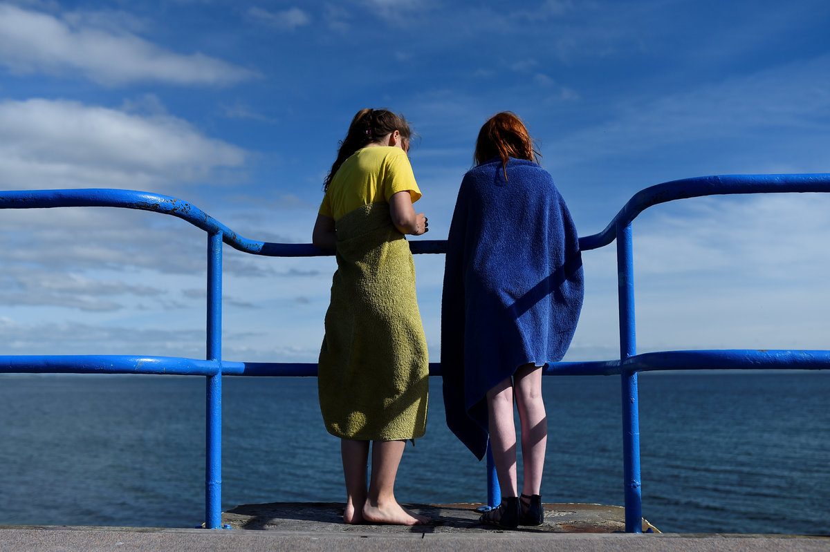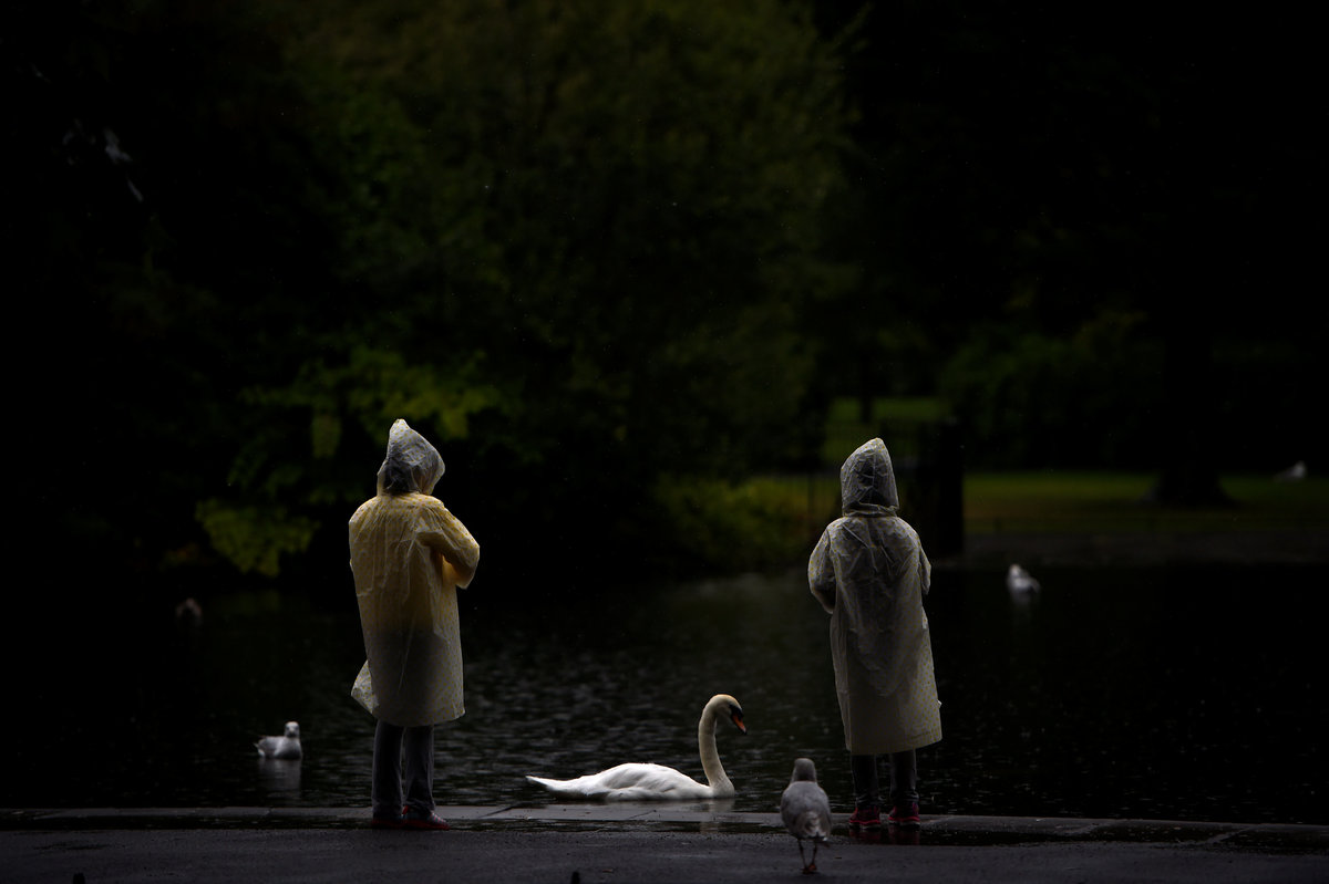 A man snorkels in the sea during sunny weather in the County Galway suburb of Salthill, Ireland, May 30, 2017. REUTERS/Clodagh Kilcoyne People in raincoats look at a swan in St. Stephen's green during heavy rain in Dublin, Ireland, August 14, 2017. REUTERS/Clodagh Kilcoyne People sunbathe on the beach during good weather in Galway, Ireland, July 17, 2017. REUTERS/Clodagh Kilcoyne A man goes for a night time swim in the sea at Galway, Ireland, July 17, 2017. REUTERS/Clodagh Kilcoyne Tourists walk around the Giants Causeway in Bushmills, Northern Ireland, August 23, 2017. REUTERS/Clodagh Kilcoyne Men relieve themselves at Inch Beach near the County Kerry village of Anascaul, Ireland, July 20, 2017. REUTERS/Clodagh Kilcoyne Two girls look down at the sea from the top of a diving board platform during good weather in the County Galway suburb of Salthill, Ireland, May 30, 2017. REUTERS/Clodagh Kilcoyne A man fishing in the rain on Inch beach in Anascaul, County Kerry, Ireland, July 20, 2017. REUTERS/Clodagh Kilcoyne People stand outside a pub in the County Galway town of Kinvara, Ireland, August 19, 2017. REUTERS/Clodagh Kilcoyne A cow stands on the beach in White Park Bay in Ballintoy, Northern Ireland, August 23, 2017. REUTERS/Clodagh Kilcoyne