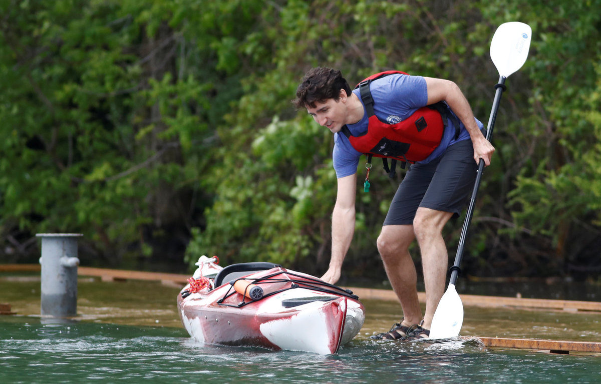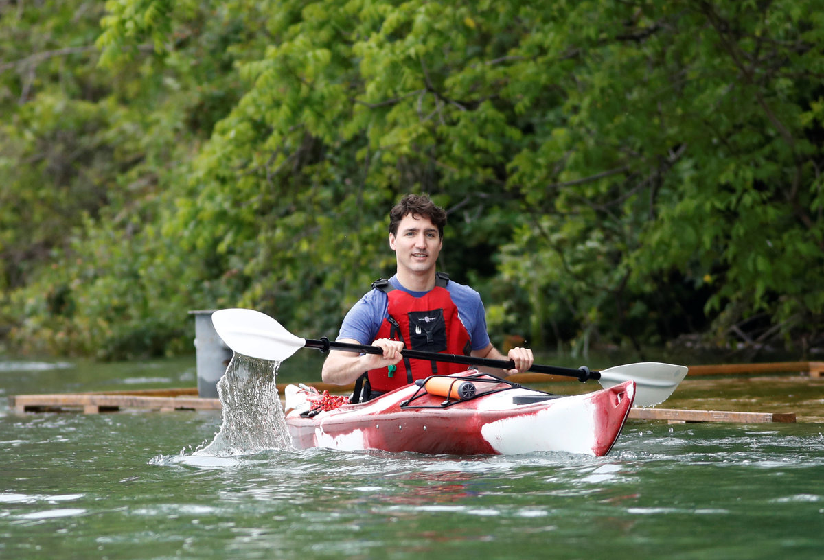 Canada's Prime Minister Justin Trudeau looks on after he paddled a kayak to mark World Environment Day on the Niagara River, in Niagara-on-the-Lake, Ontario, Canada June 5, 2017. REUTERS/Mark Blinch