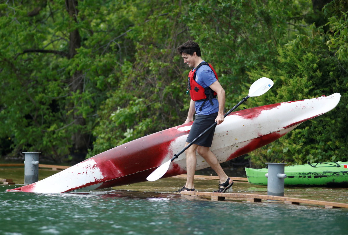 Canada's Prime Minister Justin Trudeau carries his kayak to paddle on the Niagara River, that borders with the United States, to mark World Environment Day, in Niagara-on-the-Lake, Ontario, Canada June 5, 2017. REUTERS/Mark BlinchCanada's Prime Minister Justin Trudeau speaks, following paddling a kayak, to mark World Environment Day on the Niagara River, that borders with the United States, in Niagara-on-the-Lake, Ontario, Canada June 5, 2017. REUTERS/Mark BlinchCanada's Prime Minister Justin Trudeau speaks, following paddling a kayak, to mark World Environment Day on the Niagara River, that borders with the United States, in Niagara-on-the-Lake, Ontario, Canada June 5, 2017. REUTERS/Mark BlinchCanada's Prime Minister Justin Trudeau poses with children after on World Environment Day, after paddling a kayak on the Niagara River, in Niagara-on-the-Lake, Ontario, Canada June 5, 2017. REUTERS/Mark Blinch