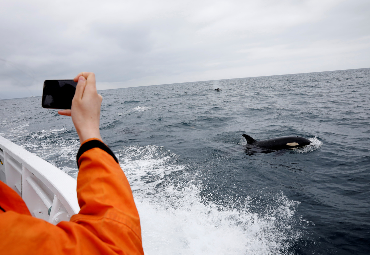 RAUSU, Japan (Reuters) - People packed the decks of the Japanese whale-watching boat, screaming in joy as a pod of orcas put on a show: splashing tails at each other, rolling over, and leaping out of the water.