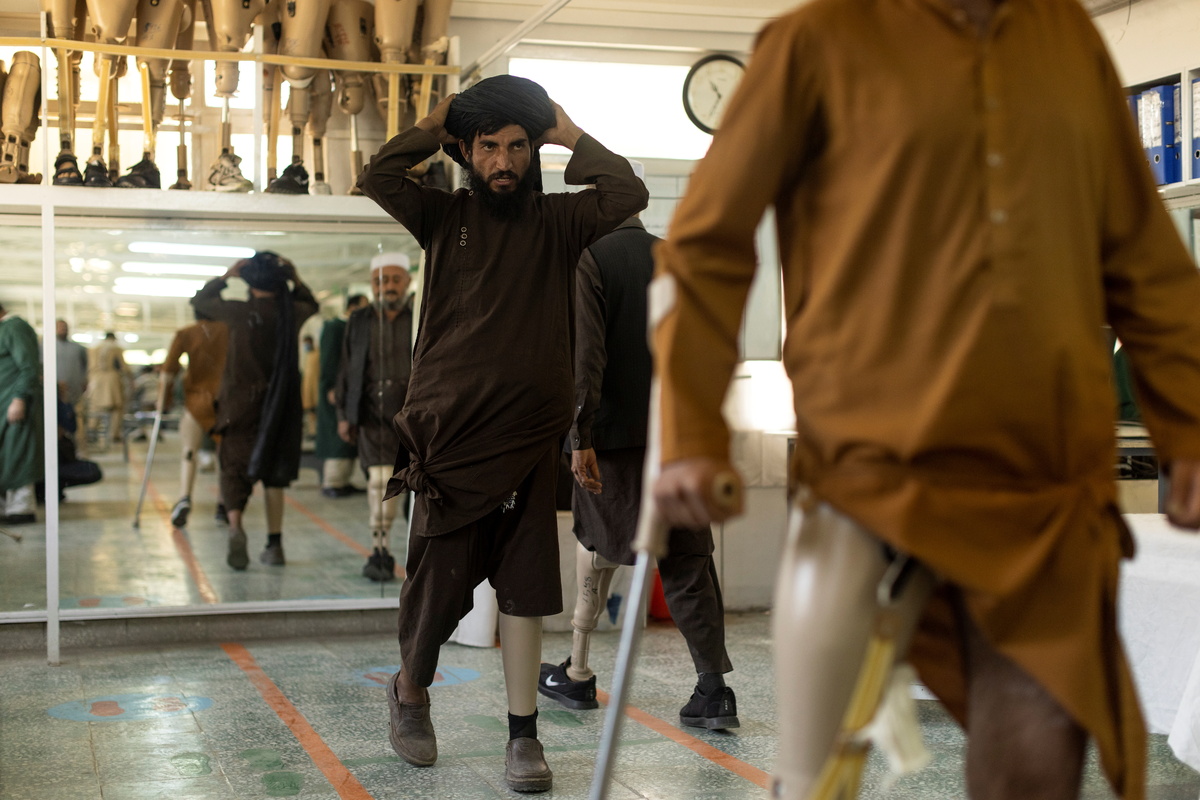 While Ishaq tried out his new leg, members of the old Afghan National Army sat in the same hall looking on alongside wounded Taliban fighters, all victims of a conflict that has killed and wounded tens of thousands of Afghans over four decades.