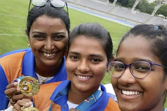 Indian women's recurve team of Deepika Kumari, Ankita Bhakat and Komalika Bari won gold medal in the World Cup (Photo credit: PTI)