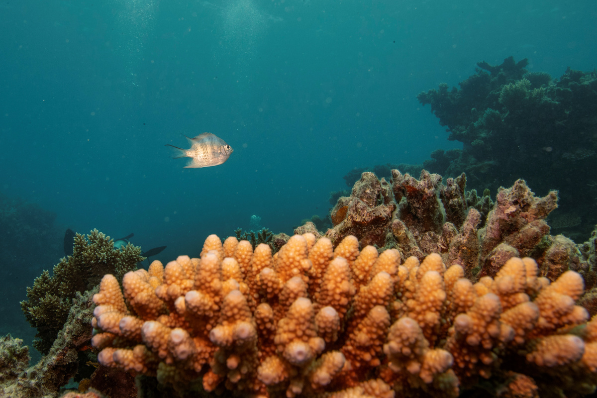 A school of fish swim above a staghorn coral colony as it grows on the Great Barrier Reef off the coast of Cairns, Australia October 25, 2019. REUTERS/Lucas Jackson