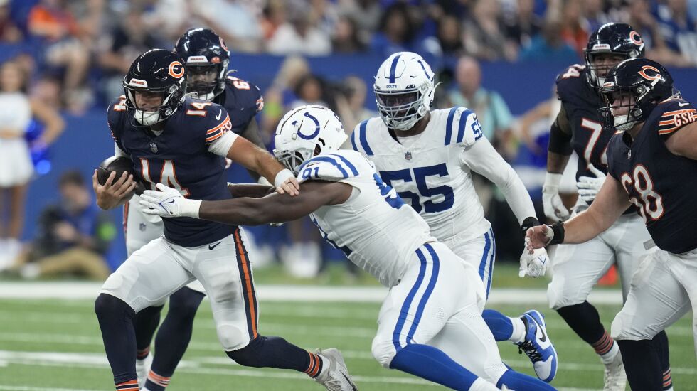 Bagent, a rookie from Division II Shepherd University, won a roster spot with impressive play in training camp and the preseason — so impressive that the Bears put him on the 53-man roster rather than risk losing him by putting him on the practice squad. It remains to be seen if the Bears sign a veteran to back up Fields.