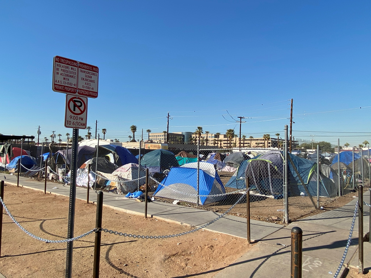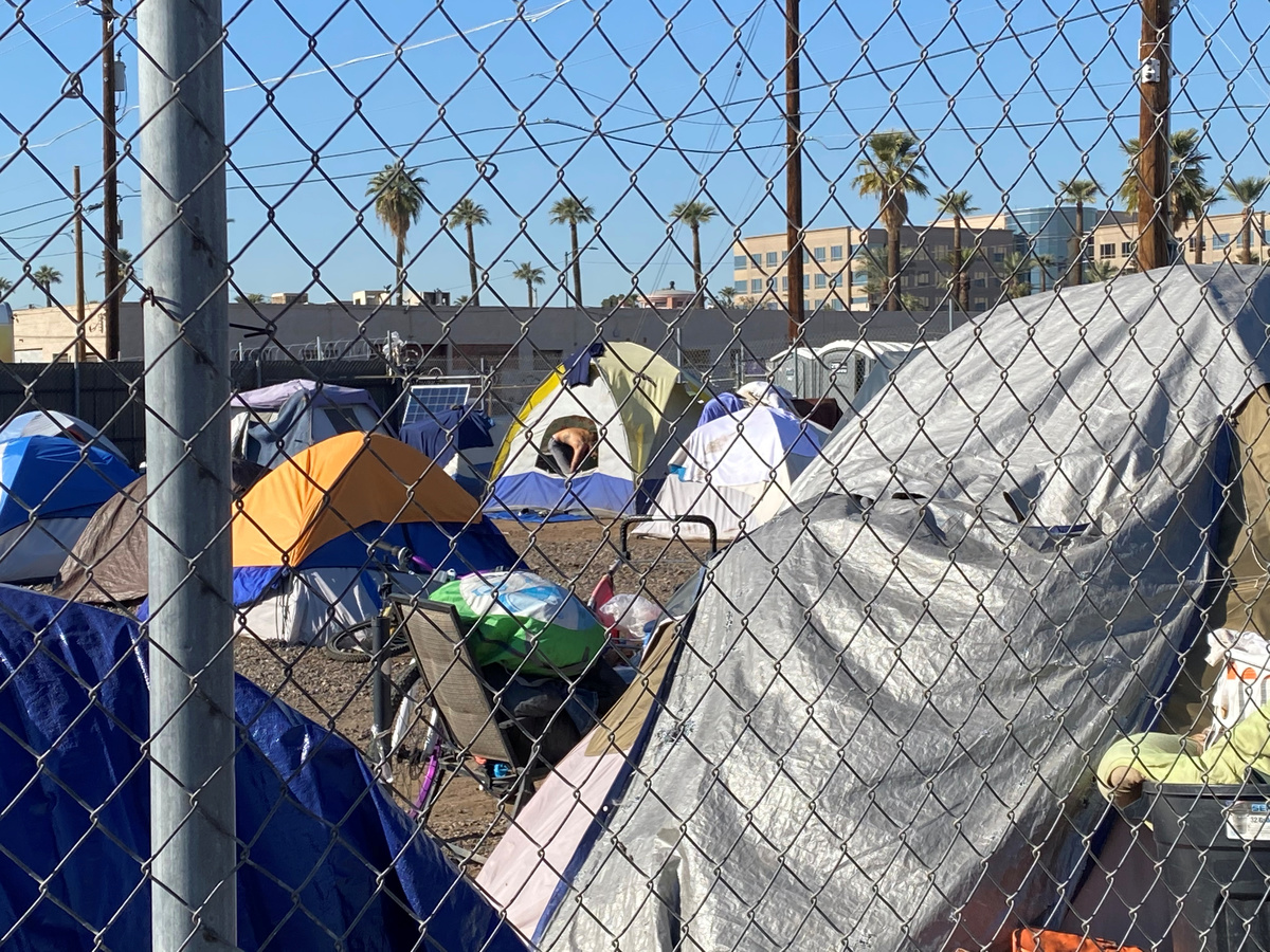 The tent city that has served as Bender's neighborhood for the past seven months is in the middle of downtown Phoenix, just down the road from luxury high-rise apartments and expensive restaurants.